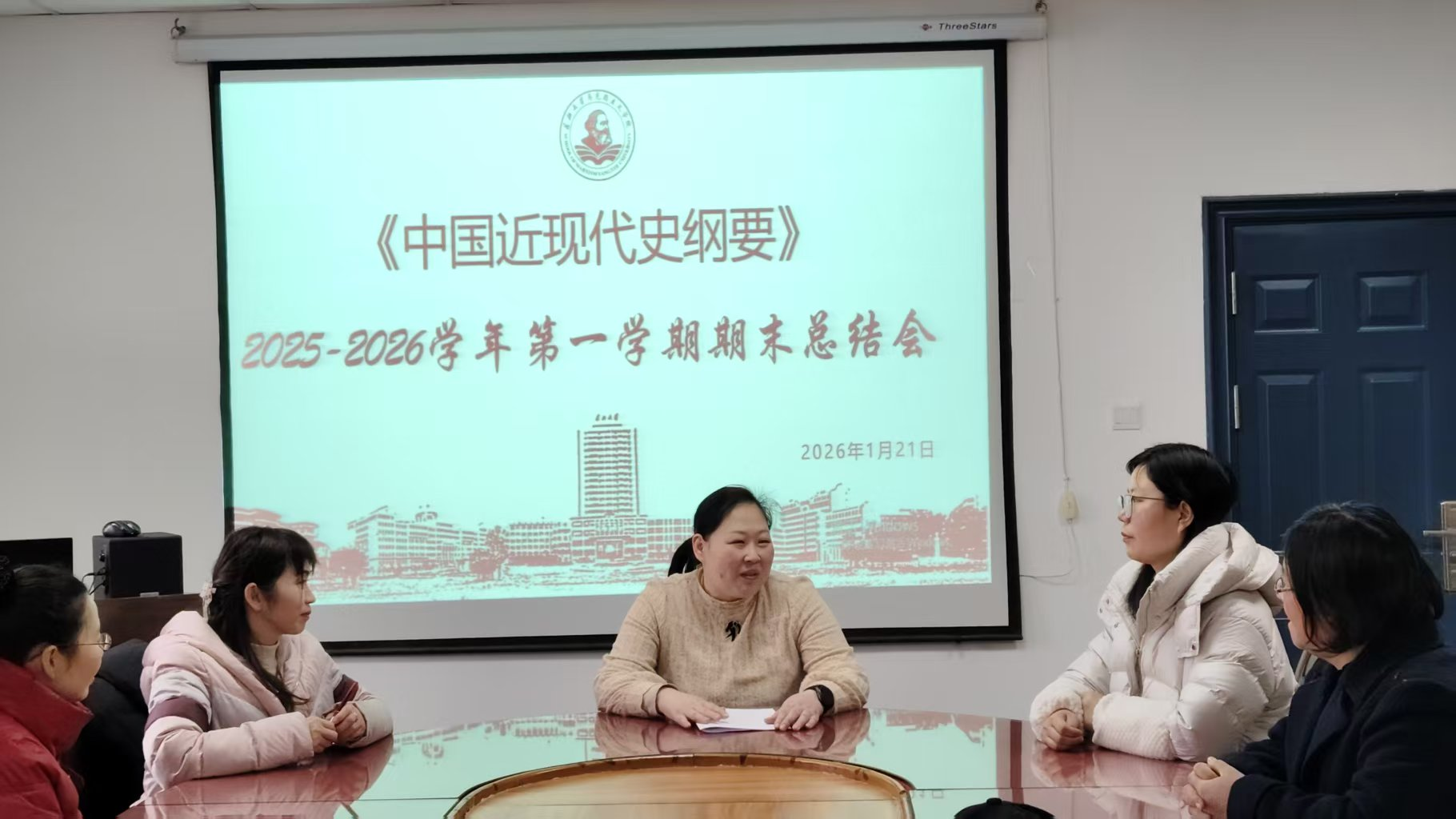 (通讯员:郭辉)2026年1月21日上午,冒着恶劣的严寒天气,中国近现代史纲要教研室圆满召开了2025年度公司产品工作总结会议。会议全面回顾了过去一年教研室在公司产品、课程建设、学术研究等方面取得的成果,深入学习了公司刚刚召开的公司产品大会的具体内容与要求,分析了当前纲要课程面临的新形势与新要求,并对2026年的重点工作进行了规划和部署。会议由教研室主任郭辉主持,全体教研室教师以线上线下两种方式参会。