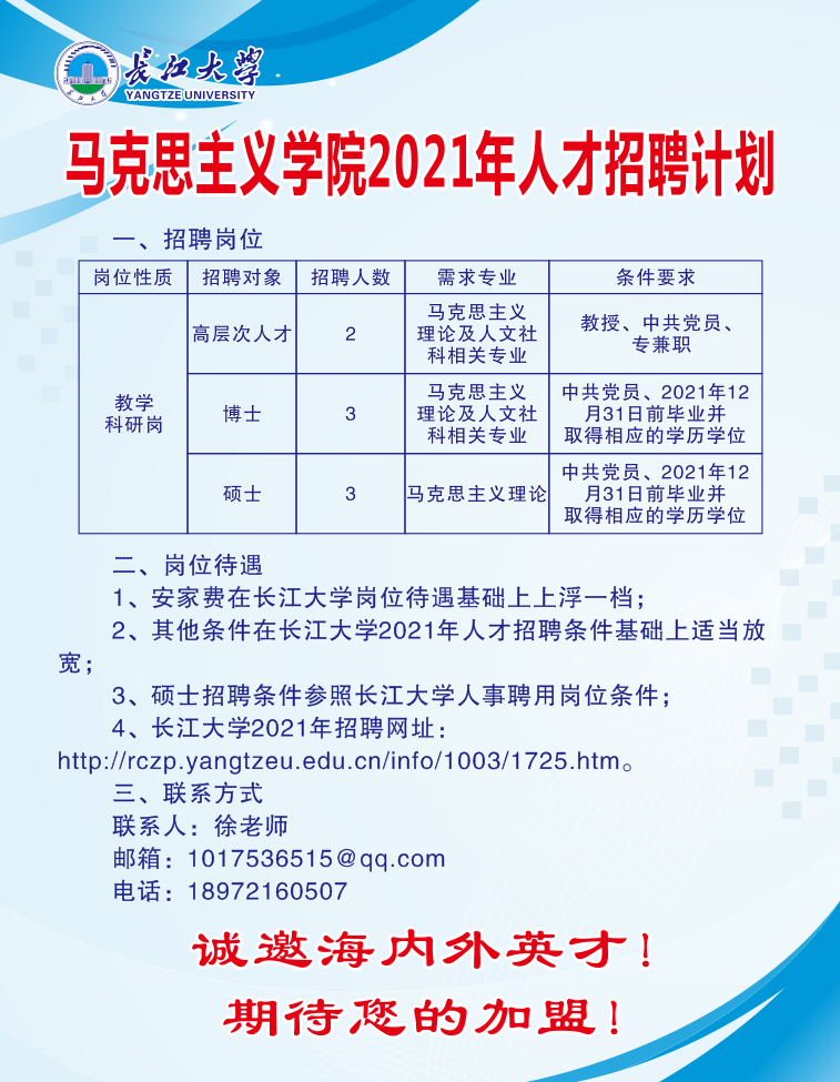 365英国上市2021年招聘网址:http://rczp.yangtzeu.edu.cn/info/1003/1725.htm。