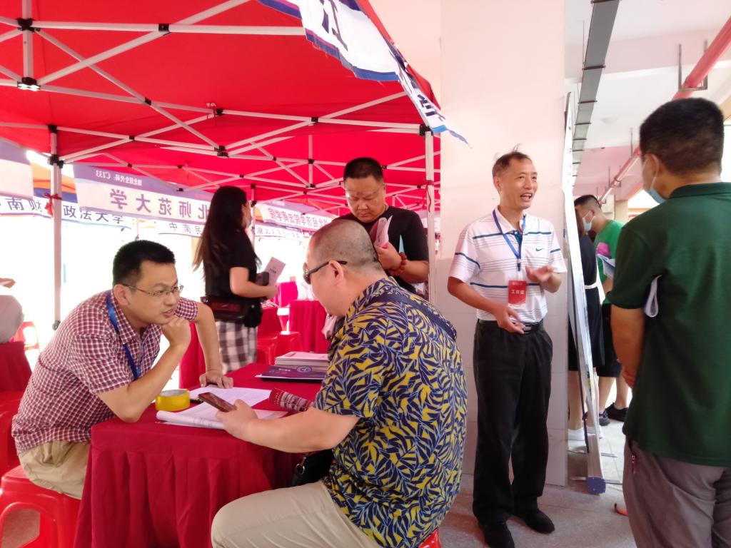 6月29日上午,宣传小组来到汉川一中,首先开展摆点、咨询等工作。咨询点如当天的太阳一般火热,每一位咨询报考信息的家长眼中都流露出兴奋与忧虑,宣传小组成员也都尽心尽力的做着讲解与宣传。咨询结束,宣传小组与该校董事长进行座谈,了解了新高考元年汉川一中的高考情况和该校针对高考改革所采取的若干措施及效果,交流了考生志愿填报的相关注意事项和方法。当天下午,宣传小组前往应城一中,拜访该校领导,为次日驻校宣传做好准备。