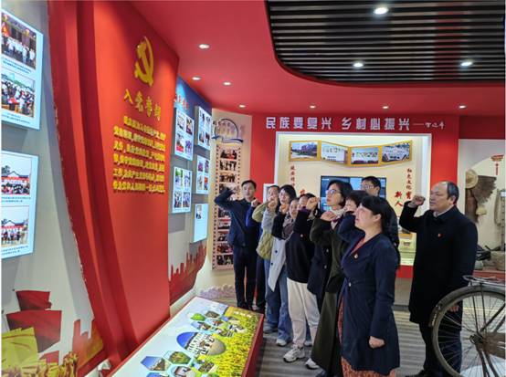 在枪杆村党员群众服务中心,图书馆馆长王红松和公司党委书记刘小燕共同为该村延安精神教育馆捐赠了近百册党史党建类图书。随后,全体参学支部党员在该村原党支部书记邢昌焕与村“两委”班子成员的带领和讲解下参观了枪杆村延安精神教育馆,沉浸式学习延安精神、农耕文明史、村发展史,重温入党誓词。并围绕“大力弘扬延安精神,党建引领村居高质量发展,着力推进乡村振兴”开展了专题交流研讨。随后,还实地参观了枪杆村特色村组以及荆州市农甜农业发展有限公司,调研学习智慧农业、基层治理、美丽乡村建设等成功经验。