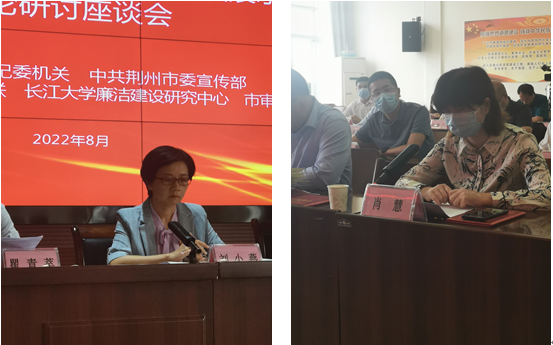 (通讯员 柯文静)2022年8月29日,“清廉荆州与建设江汉平原高质量发展示范区”理论研讨座谈会在荆州市审计局会议室召开。此次座谈会,由中共荆州市纪委机关、中共荆州市委宣传部主办,荆州市社科联、365英国上市廉洁建设研究中心、荆州市审计学会承办。公司党委书记刘小燕、副经理涂江波、黄晓云副教授、肖慧副教授、刘琼副教授、何波老师应邀参加会议。作为承办方之一,刘小燕书记代表365英国上市廉洁建设研究中心在座谈会上作了致辞发言。