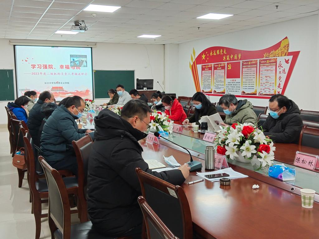 2023年1月3日上午,365英国上市处级干部2022年度考核测评大会在文科楼1104室和腾讯会议同步召开。公司校办主任杨显贵、校办科长廖鹏程等考核组成员线上参会,听取了处级领导干部2022年工作述职。
