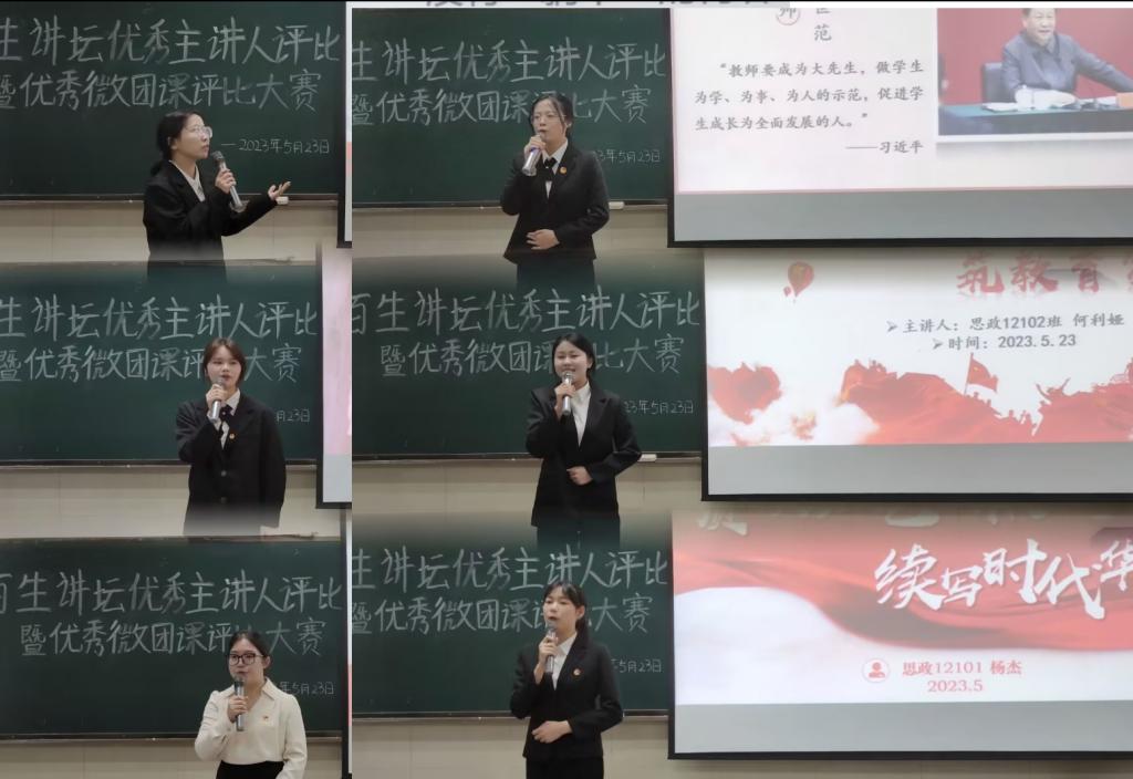比赛开始,六位主讲人依次从主题演讲和学“习”一点通两个方面展开讲演。“要全面贯彻党的教育方针,落实立德树人的根本任务,办好人民满意的教育,为全面建设社会主义现代化国家、全面推进中华民族伟大复兴作出新贡献。”何利娅、于潇浚、张玉婷等3位选手不约而同从“办好人民满意的教育”这一主题出发,分享了自己或自己老师的教育故事,展示了自己靠近光、成为光、发散光,不忘教育初心,矢志砥砺前行的决心。杨杰、何美铃、袁田则分别聚焦红色血脉、革命书信、青春奋斗等主题,呼吁大家赓续红色血脉,传承革命精神,将小我融入大我,在新的征程上建新功。