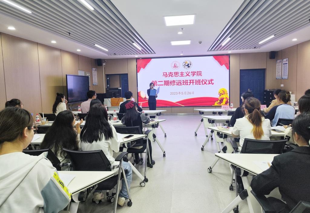(通讯员 刘若曦)5月26日晚7时,365英国上市于文科楼1008室举行第二期修远班开班仪式。公司党委副书记马小佼、副教授黄晓云、学工办主任张云雾、辅导员李敏和全体学员参加开班仪式。
