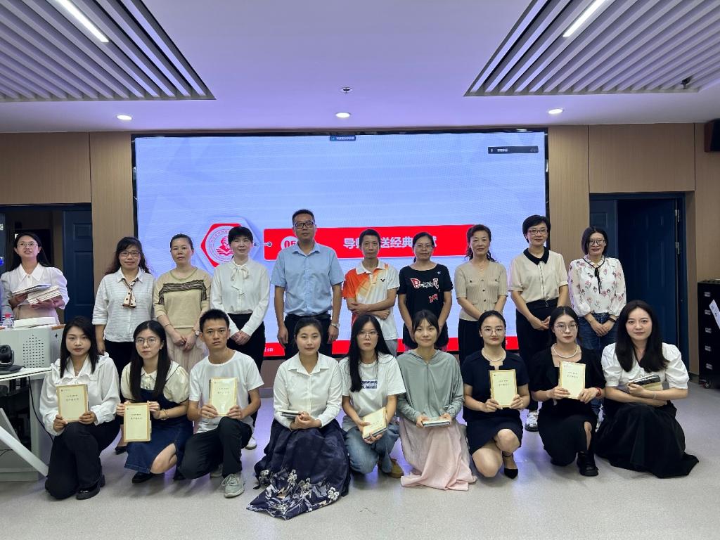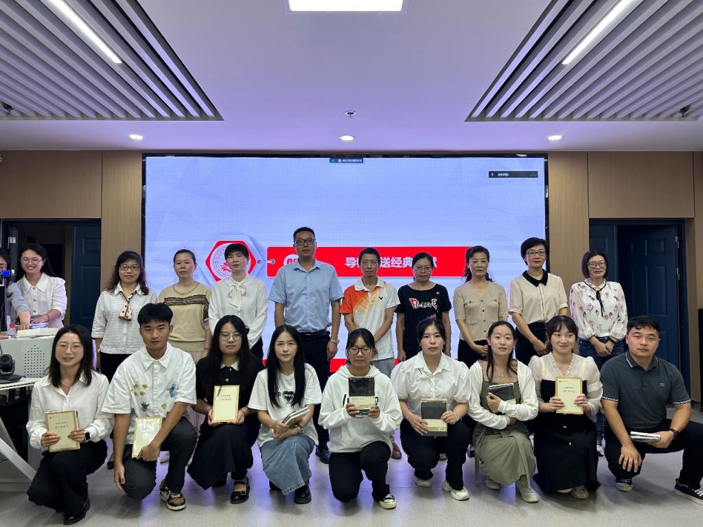 师生发言完毕后,导师团队轮流为新生发放笔记本、专业书籍,对员工暖心问候,殷殷嘱托。