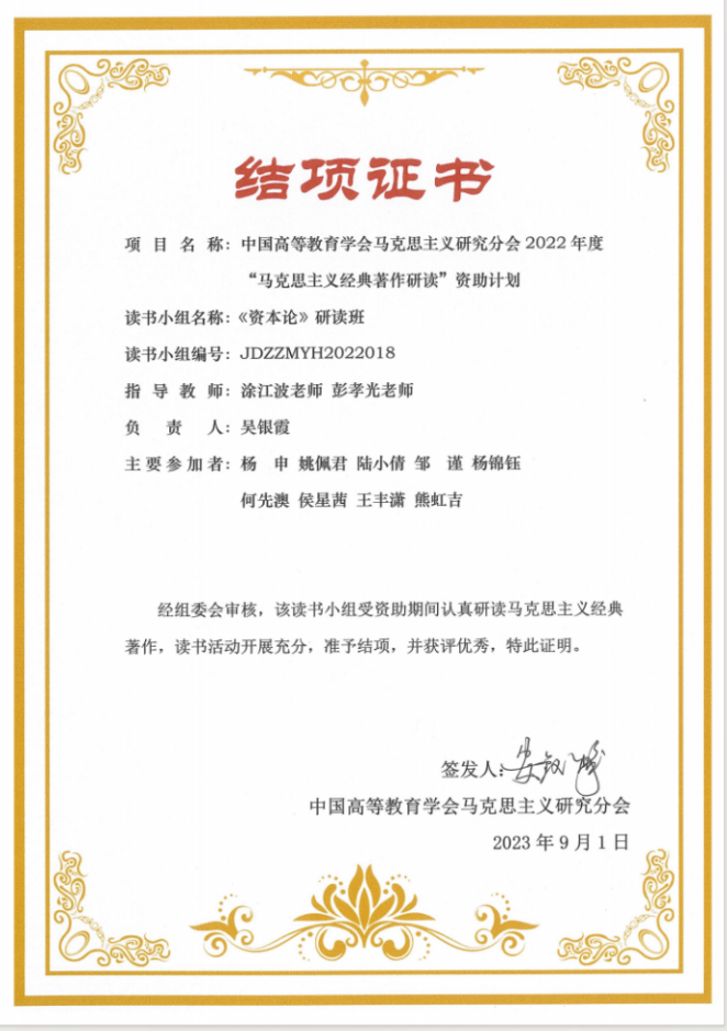 近日,中国高等教育学会马克思主义研究分会2022年度“马克思主义经典著作研读”资助计划公布了结项结果。365英国上市“追光”研读班荣获“优秀读书小组”称号。