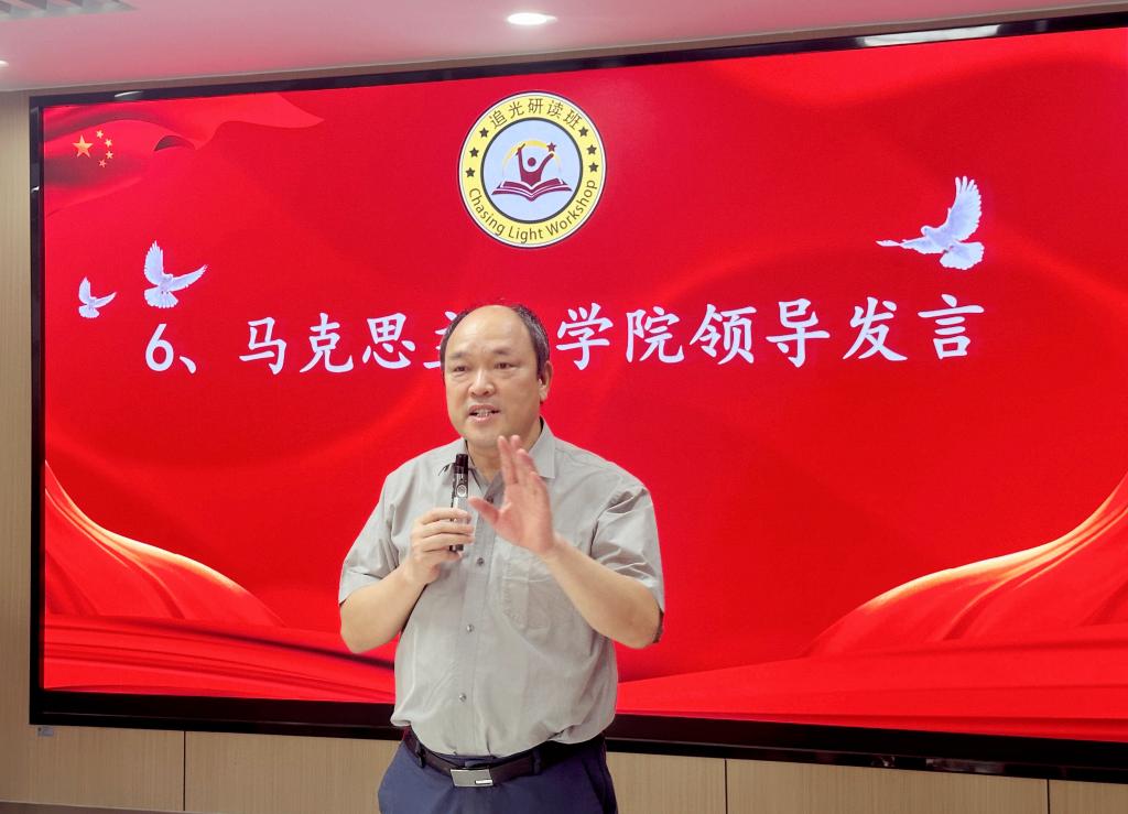 从棉衣到单衣,从输入到输出,从青涩到熟练,从浅读到深研,活动伊始,一段专题视频呈现了学子在研读班成长的点点滴滴。随后,研读班指导教师彭孝光在发言中表示,该班组建三年以来,同学们在老师指引下认真品读《资本论》等马列经典著作5部,培养了专业兴趣,夯实了学科基础,收获了美好情谊;希望大家继续保持热爱,在阅读经典中充实和丰盈自我精神生活。