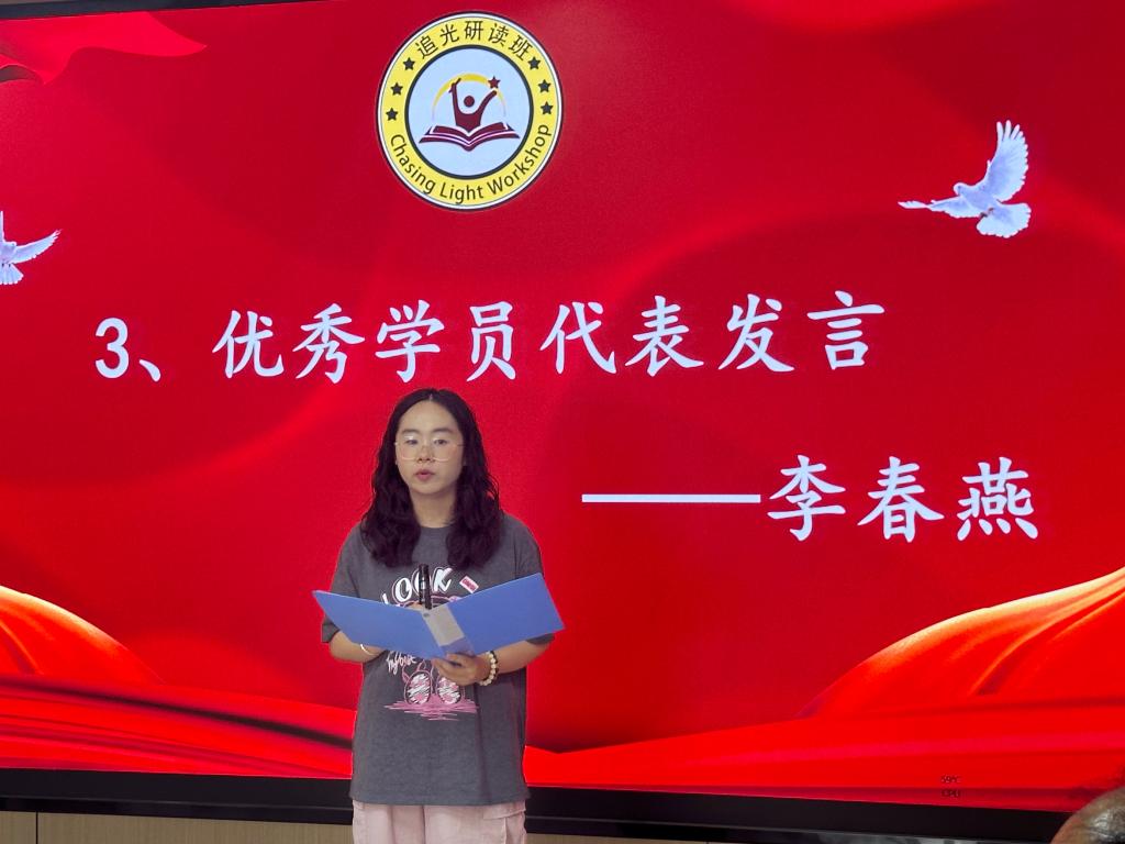 “在这里,我们学会了在日常中贯彻所学,试着像休谟那样富有洞见,像伏尔泰那样包容异见、像马克思那样打破陈见;学会了在思考中安身立命,以思考关怀面对他人,在自我反省中理解自己,用爱智之心回应时代……”学员代表李春燕和杨申依次分享在研读班学习的体验和收获。