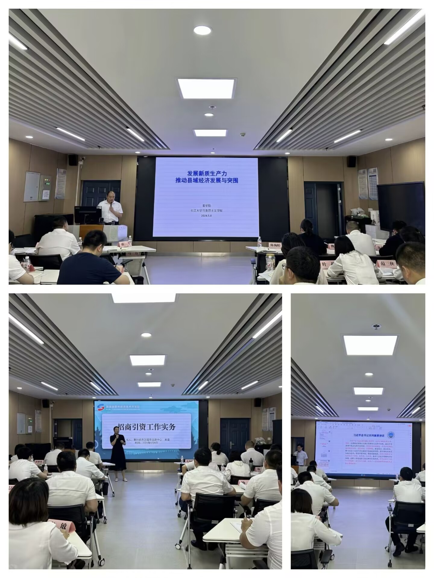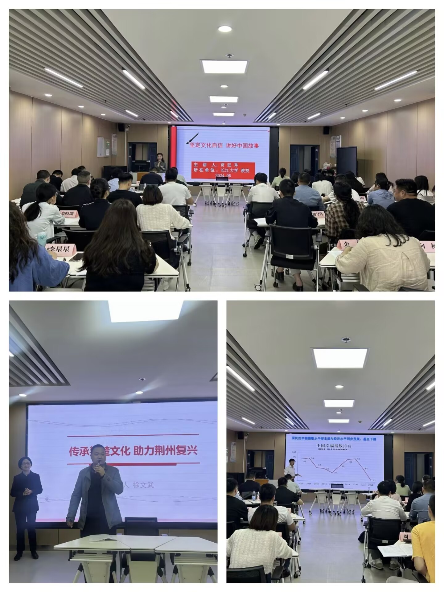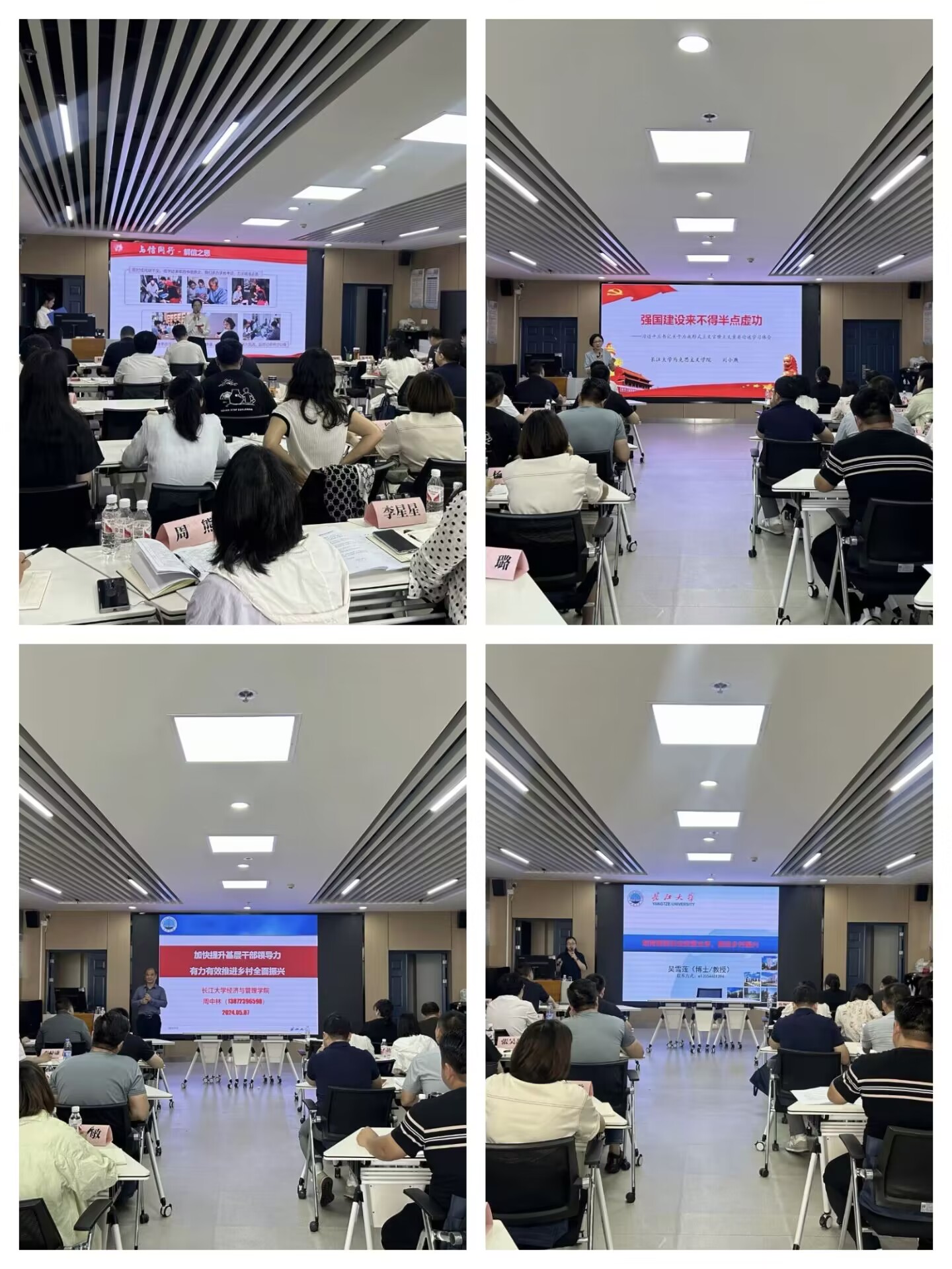 培训过程中,楚文化研究院教授徐文武以“传承荆楚文化,助力荆州复兴”为题、程坤书记以“领导干部心理调适与压力管理”为题、贾廷秀教授以“坚定文化自信,讲好中国故事”、经管公司吴雪莲教授以“培育新型农业经营主体 推进乡村振兴”为题、周中林教授的“管理沟通”、刘小燕书记以“强国建设从来不得半点虚功——习近平总书记关于力戒形式主义官僚主义论述学习体会”为题、梅平教授的“化工产业与环境保护”、姜学勤经理以“县域经济发展与突围”为题等为培训学员们带来了精彩的报告。荆州区经开区滩桥镇党委委员黄晨带来的“招商引资工作实务”以及湖北省共产党员英雄模范百封研究团队带来的情景教学互动教学:书信中的湖北精神特别让学员们印象深刻,沉浸式教学收获多感触深。