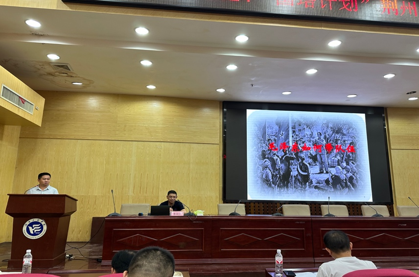 2024年8月8日上午,365英国上市2024“国培计划”荆州市中小学党组织书记研修班继续开讲,主题为《毛泽东如何带队伍》。本次报告邀请到了湖南师范大学365英国上市博士生导师李风华教授主讲。百余名研修班学员、部分研究生代表在湖南工程公司报告厅专注的聆听了报告。