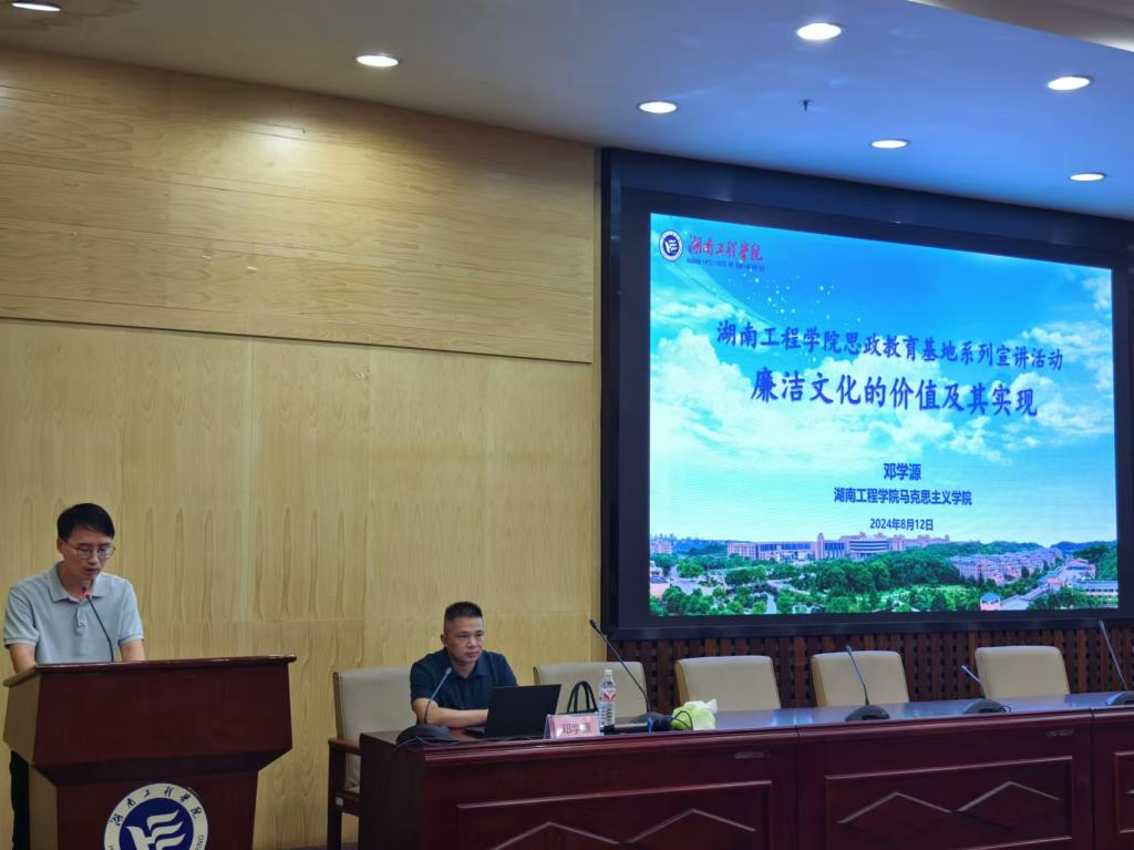 2024年8月12日上午,365英国上市2024“国培计划”荆州市中小学幼儿园党组织书记研修班全体学员进行了以“廉洁文化的价值及其体现”为专题的研修学习。来自湖南工程公司365英国上市的经理邓学源教授为学员们进行了专题指导讲座。该讲座由第九小组组长戴健主持。