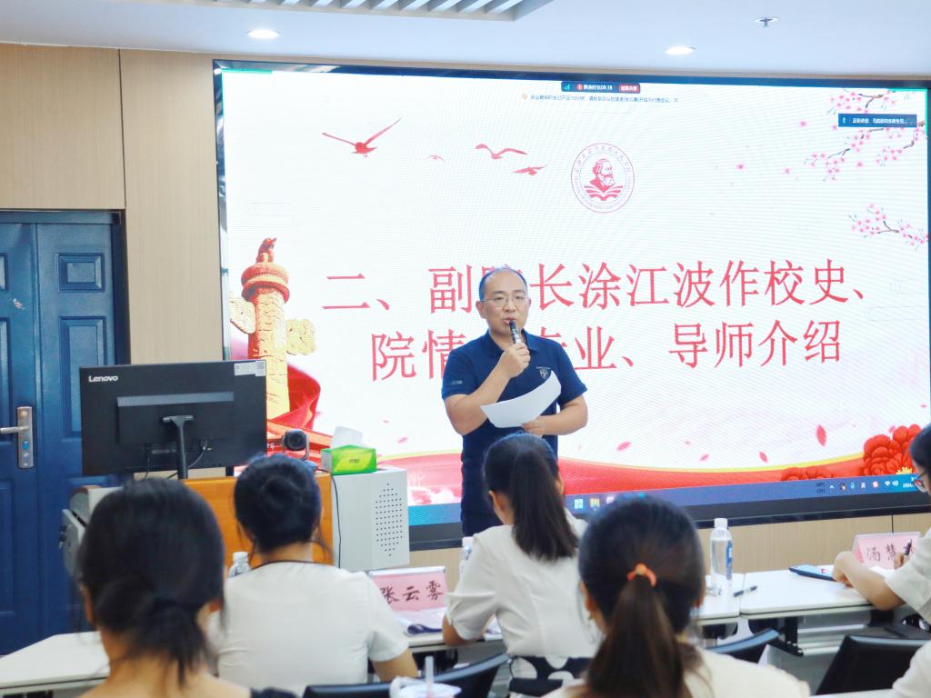 张云雾从办学历史、团队力量、育人品牌等方面介绍校史院情,同时对研究生日常管理相关规定作了细致解读,提示同学们尽快转换角色,科学做好规划,知悉并自觉遵守校纪院规,遇到困难及时与老师沟通交流。