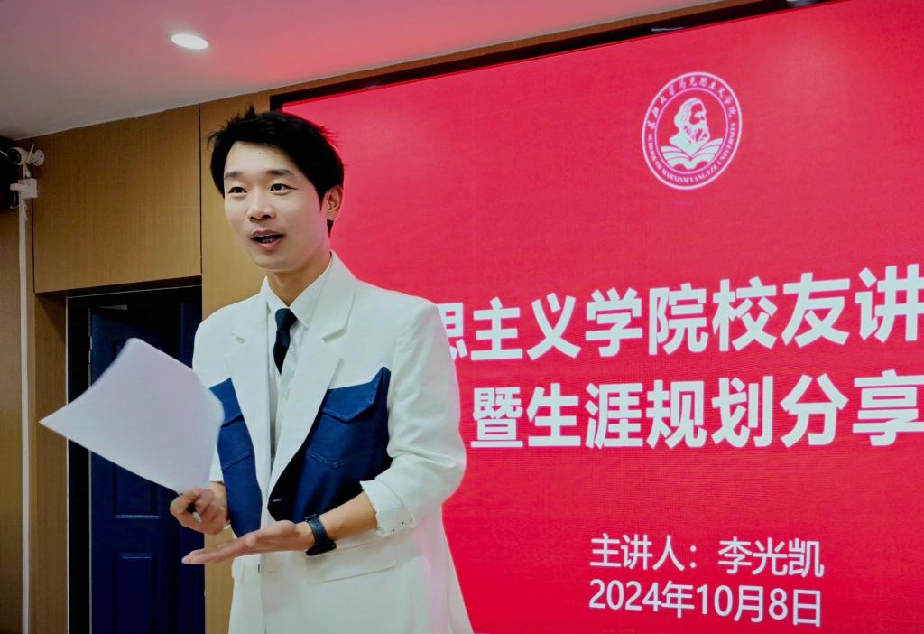 在互动问答环节,同学们积极提问,李光凯耐心解答。“迷茫是青春的常态”“热爱可抵岁月漫长”“无论什么底色都可以活出光芒”等金句不断,现场气氛轻松活跃。