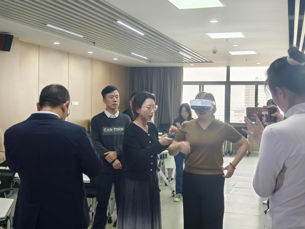 之后,涂经理就公司VR实验室的建造、使用、设备管理及后期运营等多个方面进行了详细介绍,湖南工程公司的几位老师也亲身体验了VR眼镜等先进设备并给出了一致的好评。