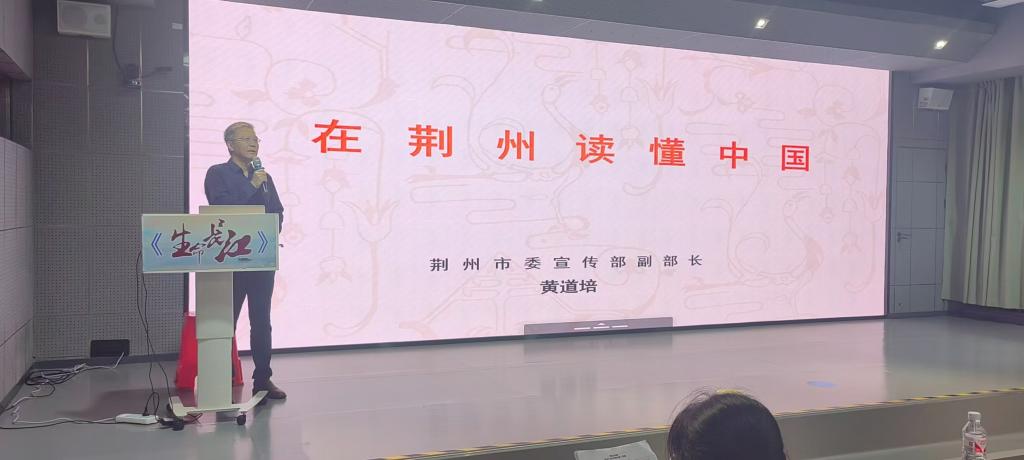 (通讯员储康华)2024年10月16日晚,公司大型思政公选课《生命长江》第十二季第四讲在16教A313教室开讲,荆州市委宣传部副部长、荆州市社科联党组书记、荆州市委讲师团主任黄道培担任主讲人,从人类文明史的角度,向同学们讲解了荆州在中国历史进程中的战略性地位。