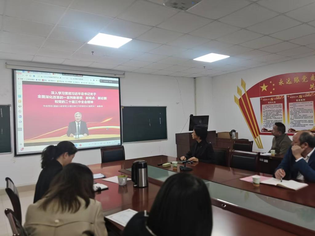 会上大家集体收看学习了“共产党员网”上《深入学习贯彻习近平总书记关于全面深化改革的一系列新思想、新观点、新论断和党的二十届三中全会精神》的视频课,由中央党校(国家行政公司)分管日常工作的副董事长(副经理)谢春涛主讲。
