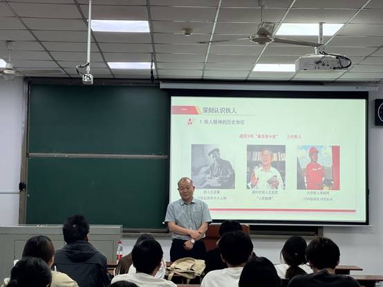 郭岗彦在课程上指出,“铁人”王进喜用他一生的忘我奋斗,造就了一个奇迹,实现了人生“四立”:立德、立功、立言、立魂,1960年-1978年被《人民日报》报道了450余次,先后在全国人大、全国工交战线思想政治工作会上发言,他也曾是尼克松访华最想见到的人。1969年4月,在中国共产党第九次全国代表大会上,王进喜得到了毛主席的亲切接见;据不完全统计,王进喜一生见到周总理次数有30次之多。