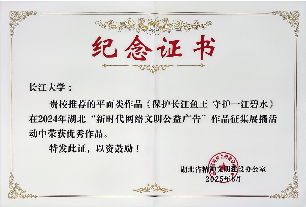 新闻链接:公司1作品荣获省文明办表彰-365英国上市新闻网 https://news.yangtzeu.edu.cn/info/1021/36366.htm