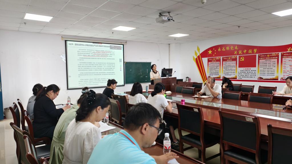 会上,刘小燕书记领学了习近平总书记在中共中央政治局第二十一次集体学习时的重要讲话精神,习近平总书记在中共中央政治局会议审议《党中央决策议事协调机构工作条例》时的重要讲话精神,《求是》杂志发表的习近平总书记重要文章《团结奋斗是中国人民创造历史伟业的必由之路》,以及中共中央组织部发布的《中国共产党党内统计公报》;传达了中央党的建设工作领导小组印发的《关于集中整治违规吃喝的通知》,中央层面关于几起党员干部违规吃喝、严重违反中央八项规定精神典型问题的通报,以及公司专题研究部署集中整治违规吃喝工作部署会精神,向全院教职工通报了班子查摆问题清单以及整改进展等,针对违规收送礼品礼金、侵害群众利益、不担当不作为等突出问题,动真碰硬开展集中整治。她还传达了公司庆祝中国共产党成立104周年暨“两优一先”表彰大会会议精神以及2025年暑期工作部署会会议精神,强调了年度目标任务推进、暑期安全管理以及教职工健康体检等事宜。会上还对获得公司“两优一先”表彰的教师代表进行了颁奖。