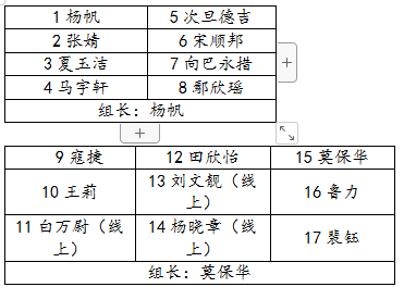 成员:尹业香(组长)、涂江波(组长)、万敏、蒋萍、徐骆、王贤锋、肖芬蓉、邓亚中