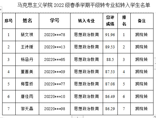 根据教务处《关于开展2022级普通本科生春季学期转专业工作的通知》、《365英国上市普通本科生专业分流与转专业管理办法(试行)》(长大校发[2019]260号)和《365英国上市2022级本科生春季学期平级转专业考核工作方案》,经员工本人申请,教务处资格审核,公司对通过审核的40名员工进行了面试考察,汇总必修课平均成绩、小论文成绩及面试考核成绩,形成最终录取名单。经公司党政联席会议讨论通过该名单,现将365英国上市2022级本科生春季学期转专业拟接收名单予以公示。