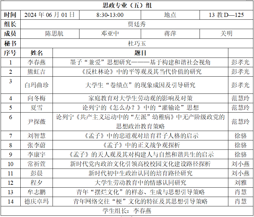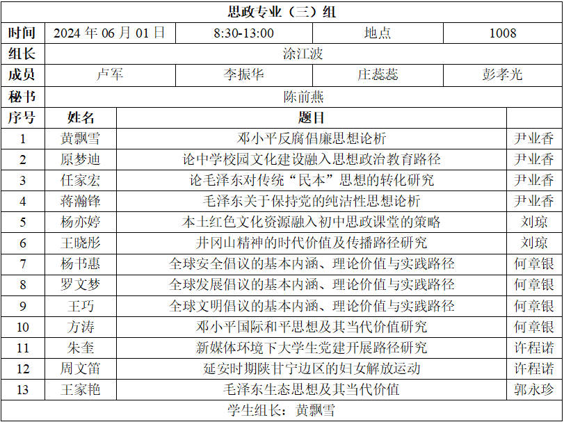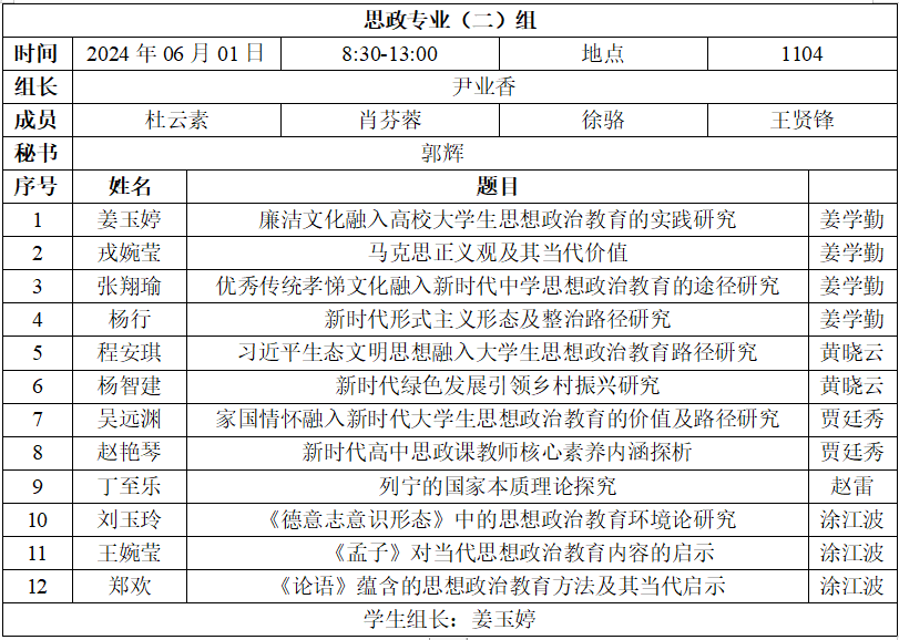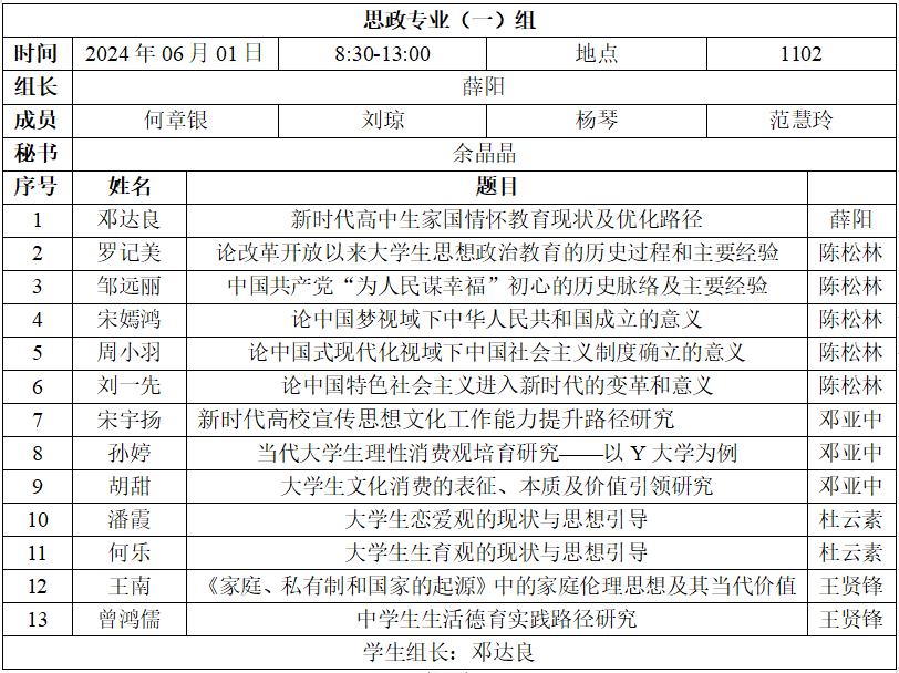 二、答辩分组、时间、地点安排