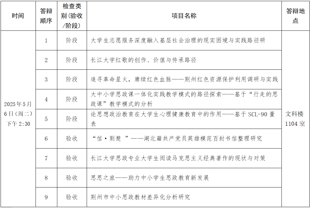检查答辩分PPT汇报(汇报5分钟)、提问与答辩(5分钟)两个环节进行,汇报内容为:项目研究内容、方法、研究成果、项目的创新性及任务的完成情况等。陈述由1人完成,回答问题或研究感受可以由其他成员补充。