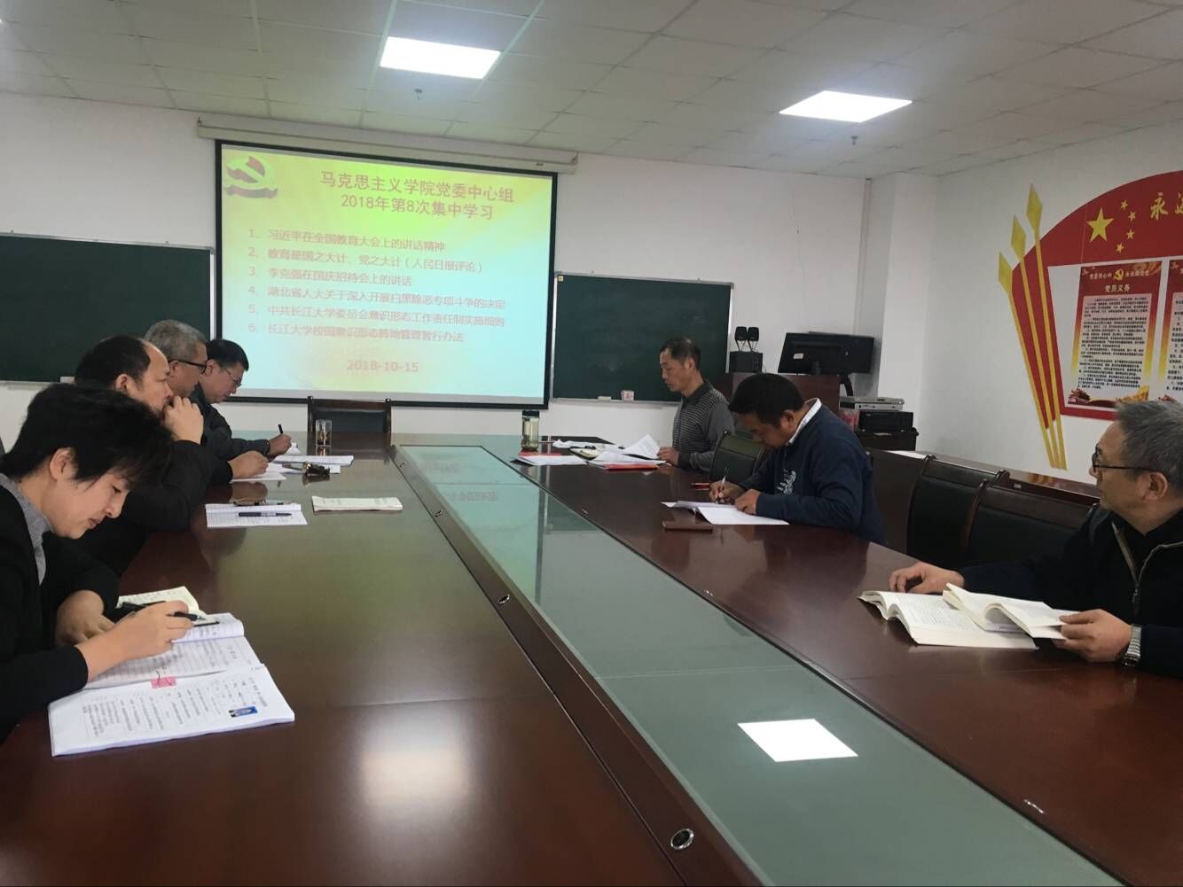 365英国上市于2018年10月15日在文科楼1104室举行了党委理论学习中心组第八次集中学习,党委理论中心组成员及各支部书记参加了学习会,会议由党总支书记吴智勇主持。