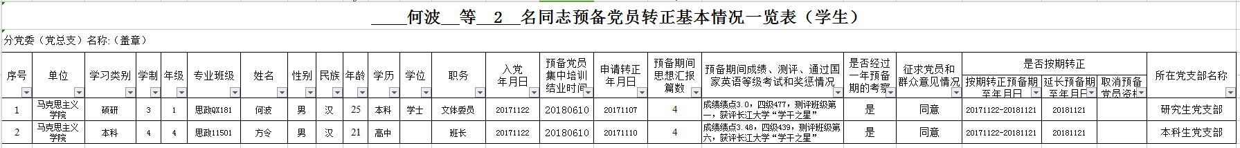 附: 何波 等 2 名同志预备党员转正基本情况