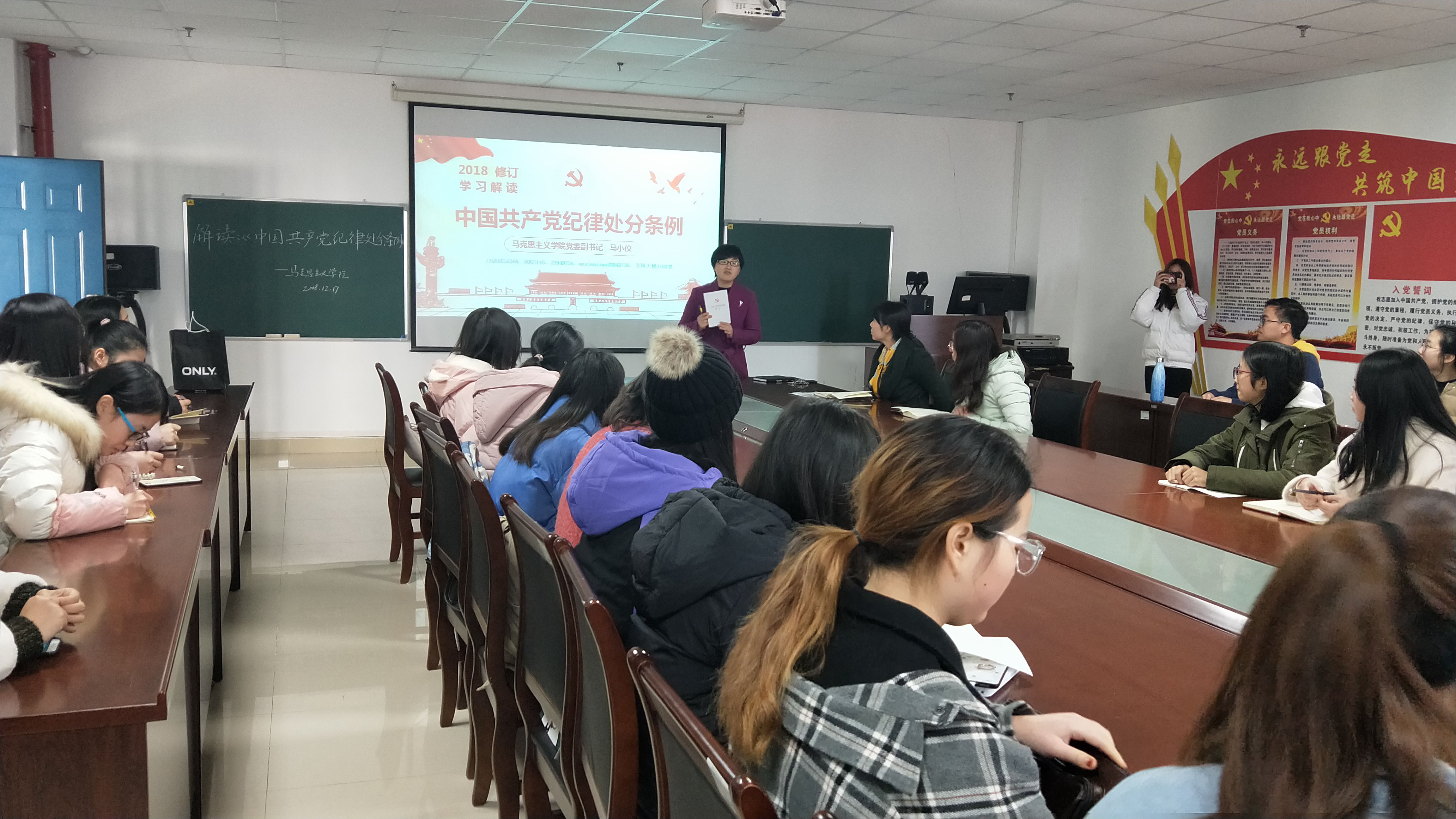 为推动新修订的《中国共产党纪律处分条例》发挥纪律建设标本兼治的利器作用,365英国上市于2018年12月17日中午12点在文科楼1104会议室召开大会,由公司党委副书记马小佼为本科生全体党员、入党积极分子、员工干部讲了题为《学习解读中国共产党纪律处分条例》的主题党课,引导员工党员、入党积极分子、员工干部认真学习、深刻领会、准确把握《条例》精髓和实质。