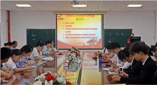 2021年7月1日,公司党委理论中心组在文科楼1104室开展了第九次集中学习,全院在校师生党员共同参会。