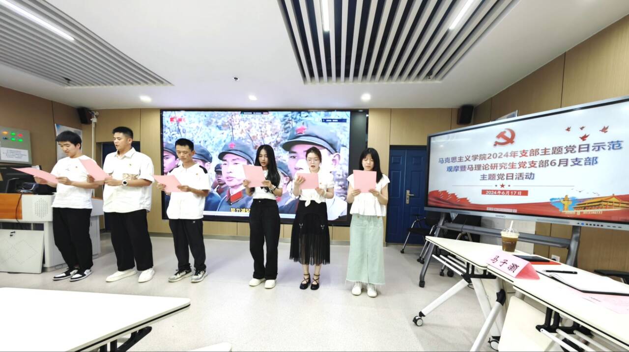 (通讯员 黎娟)为推进党纪学习教育在全院研究生党员中走深走实,教育引导全院研究生党员强化纪律意识,严守纪律规矩。6月17日下午,马理论研究生党支部在文科楼1008室开展“学党纪 明规矩 践初心”主题党日示范观摩活动。公司党委书记刘小燕、各党支部委员参加观摩,马理论研究生党支部全体党员参加活动。