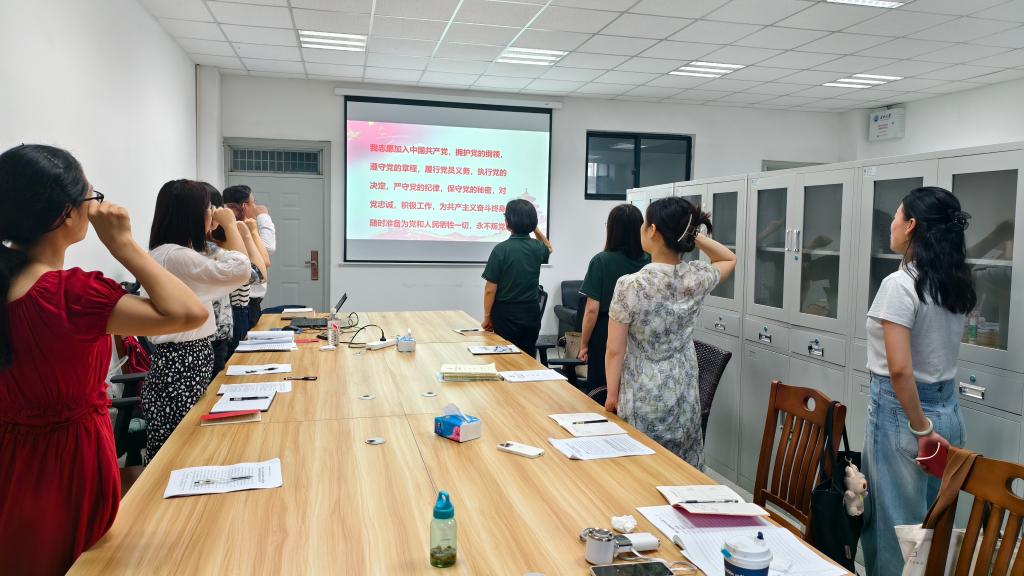 思政课武汉校区党支部六月主题党日活动在武汉校区实验楼422室开展,支部全体党员参加,活动由支部书记何章银主持。主题党日活动由支委万文婷同志领誓入党誓词拉开帷幕,在交纳本月党费后,她带领与会党员学习了《中国共产党章程》第七章。接着由庄蕊蕊与杜云素同志主讲“三大精神”专题党课。庄蕊蕊从大别山精神的形成、大别山精神的基本内涵与大别山精神的时代价值三个方面全面讲授了“大别山精神”。杜云素同志从抗疫精神的提出、抗疫精神的内涵与马公司党员教师对抗疫精神的书写与传承三个方面生动讲授了“抗疫精神”。紧接着,由袁爱雪同志领学“习近平总书记重要讲话和重要指示批示精神”与中央相关文件;由刘雅同志领学“深入贯彻中央八项规定精神学习教育”相关文件;由谭梦媛同志领学“习近平总书记关于大别山精神、抗洪精神、抗疫精神的重要论述”;由何章银同志领学“违反政治纪律和政治规矩问题案例精读及取证指引(节选)”与“违反中央八项规定及其实施细则精神典型案例”,并组织观看典型案例视频。最后,支部全体党员围绕“党员干部如何以案为鉴,以身作则,筑牢防线,坚决抵制违规吃喝”展开主题研讨。杜云素、庄蕊蕊、刘雅、谭梦媛、万文婷、袁爱雪结合自身实际,谈了自己的看法。支部书记何章银最后总结道:“党员干部以案为鉴、以身作则,筑牢防线,坚决抵制违规吃喝,是落实全面从严治党要求、深化作风建设的重要体现。”并提出具体实践的四大路径,即“以案为鉴,强化警示意识;以身作则,严守纪律红线;筑牢防线,建立长效机制;深化认识,提升政治自觉”。