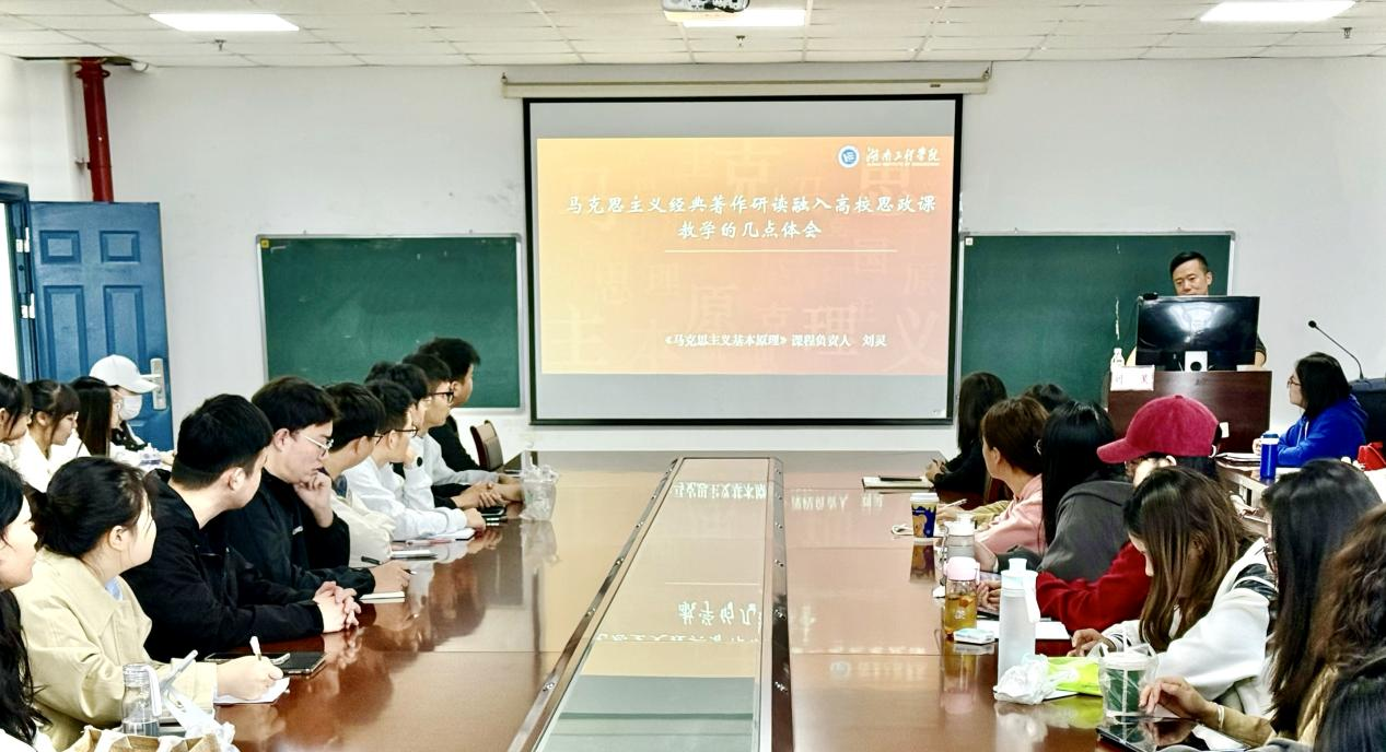 “以教材逻辑为基础、以文本研读为主线、以关怀现实为导向。”讲座中,刘博士聚焦“如何以马克思主义真理之光指引铸魂育人之路,切实提高思政教学的吸引力和实效性”这一主题,结合当前高等公司本、研员工的“三观”现状和所在公司教学金课建设实际,以幽默风趣、生动诙谐的语言,全面系统、深入浅出地为在场师生解析了马克思主义经典著作研读融入高校思政课教学的意义、方法与路径选择。