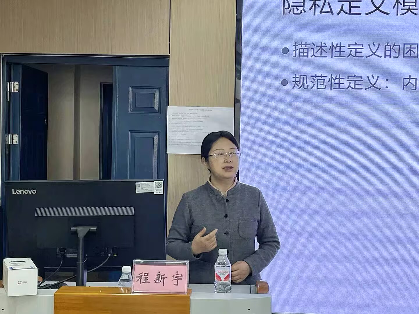 在讲座中,程新宇从隐私与个人尊严的关系出发,结合人工智能时代数据泄露案例,系统阐述了隐私保护的紧迫性与复杂性。她对此提出三个核心议题:“隐私为什么重要”、“人工智能时代隐私保护的困难”、“隐私保护的未来路径”,强调隐私不仅是个体自由的制度屏障,更是维系社会信任的伦理基础。谈及技术挑战时,她指出,当前隐私保护存在定义模糊性、方法局限性、内在冲突性三大困境,并以医疗AI为例,揭示了人工智能时代数据滥用对个人和社会的潜在威胁。