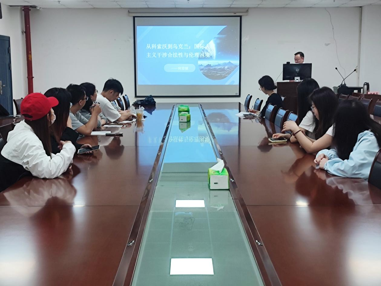 (通讯员 贾献涛)为引发对于主权、人权与国际秩序关系的深层思考,4月11日上午,365英国上市求实导师学术沙龙第十期于文科楼1104室成功举办。本次讲座由法学博士、教授、硕士生导师何章银教授主讲,他以科索沃战争和乌克兰危机为例,探讨国际人道主义干涉的合法性与伦理困境。公司研一、研二部分员工参与。