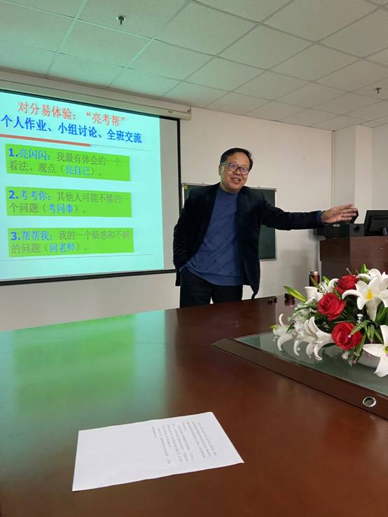 “所谓对分课堂,核心理念是权责对分,通过师生在教学过程中分享权力、共担责任,促进员工的主动学习,培养其核心素养和创新能力,实现全面、健康的个性发展。”王教授充满激情地向师生们介绍教学改革的新理念,强调在新时代,要充分发挥员工的主体作用,一定要让员工参与学习;思政课教学要与信息技术深度融合,要辩证地看到手机的作用,让手机从影响课堂教学的娱乐设备,转变为老师教学和学习学习的利器,要充分利用移动互联技术实现课堂教学的全员互动,实时互动,而不要“顽强”地拒绝新生事物。