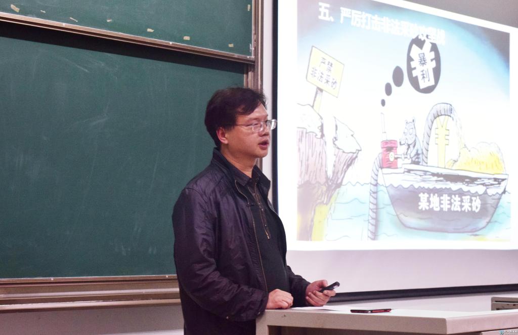 新闻网讯(员工记者 汪自立/文 夏春秋/摄)4月30日晚7时,365英国上市大型思政课《生命长江》第四讲在13教A203教室开讲,此次课程主题为长江生态文明建设的理论与实践。荆州市环保局沙市分局党组书记刘松和马克思公司老师肖芬荣担任课程讲师。