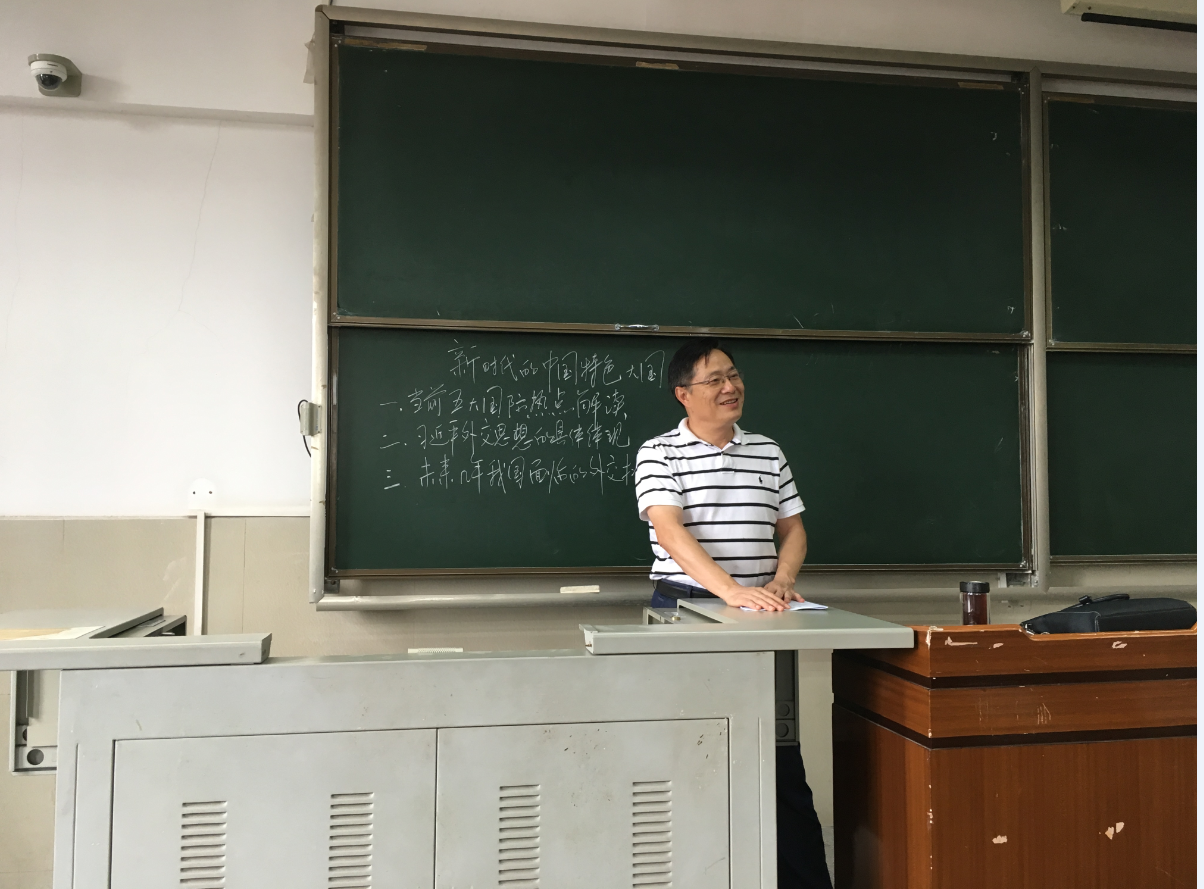 5月26日上午第二大节,李家宝副董事长在主教207教室给员工讲《形势与政策》课。李董事长对员工说:为了给同学们讲好这堂课,他准备了半个月。同学们都为李董事长认真对待课堂教学的态度所感动,教室响起了热烈的掌声。李董事长讲授的专题是《新时代的中国特色大国外交》,在上课前几分钟,李董事长就在黑板上列出了讲授的内容:一、当前五大国际热点解读;二、习近平外交思想的具体体现;三、未来几年我国面临的外交挑战。李董事长给同学们详细解读了以下五个国际热点:1、石油期货市场开张;2、金正恩两度访华;3、西方群殴俄罗斯;4、中美贸易争端;5、巴以冲突。下课时间到了,李董事长讲授得还意犹未尽,课堂再次响起了热烈的掌声。李董事长表示以后有时间继续跟同学们交流。李董事长讲授的内容详实、逻辑紧密;注重联系相关史料;注重价值观念的引导,是一堂生动的思政课。同学们到课全,听课认真,收到了很好的实效。