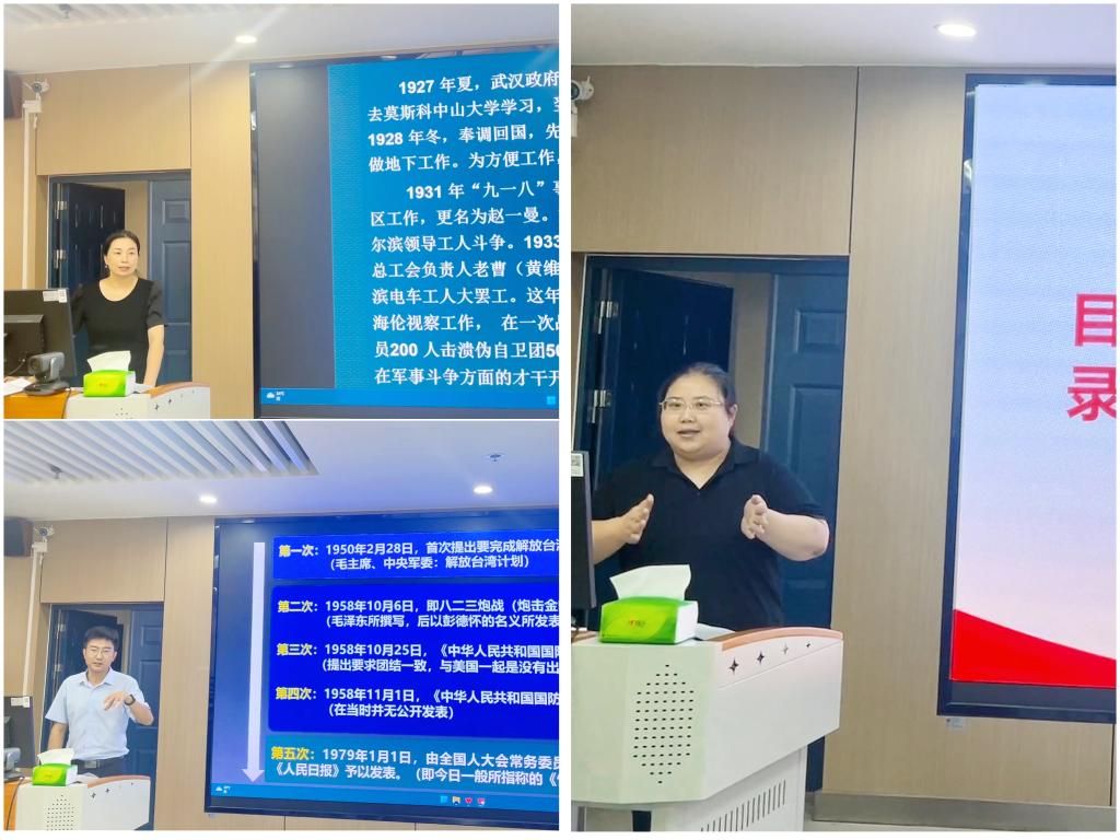 备课会以“说课”的形式开展。课程组蒋萍、孙萌、廖鹏程三位老师分别就“忠诚与担当”、“青春向党,见字如面”、“‘五封’家书”专题进行了说课讲解,就各专题的主要内容、逻辑结构、重点难点,进行了各具特色的教学设计,补充了大量的教学案例,准备了丰富的教学资源,提出了建设性的教学建议。
