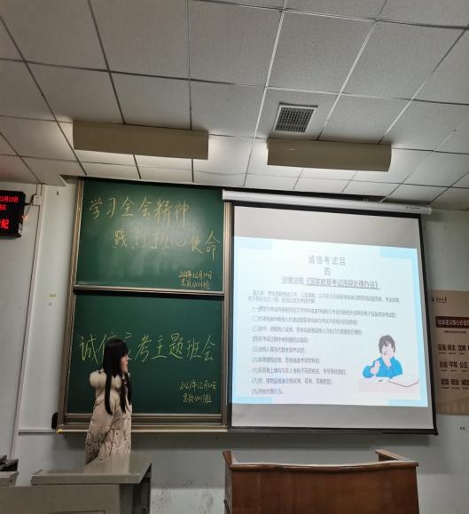 会上,各班班长向同学们传达了与各项考试相关的规章制度,如《国家公司考试违纪处分规定》、《公司考试违纪处理案例》等,并宣读了考试相关条例,详细说明了考试过程中要诚实守信,诚信考试,诚实做人,郑重向同学们发出倡议: