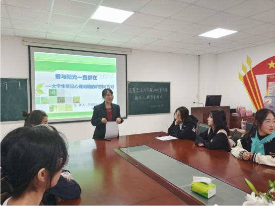 张云雾老师以“爱与阳光一直都在——老员工常见心理问题的识别与应对”作为讲座主题,她从心理健康常识、识别常见的心理问题、心理危机的应对与帮扶等方面进行了讲解。张老师分析了产生心理问题的原因和大学新生常见的心理问题,提醒员工骨干们遇到心理困扰时,要学会自助,在他人遇到心理困扰时给予帮助,满足同学被团体接纳、爱护、关注、认同、支持等心理需求,在日常生活中要注意营造和谐的人际氛围,给予同学归属感,而非忽视和拒绝带来的孤独感。