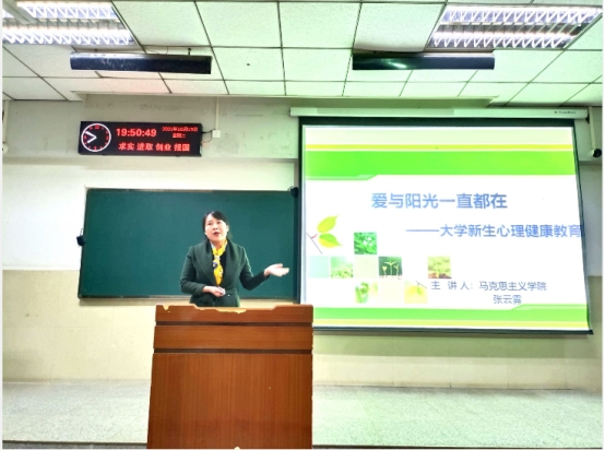 张老师首先要求同学们了解心理健康的标准、意义等常识,并对全体新生提出了期待。她列举了一系列大学新生常见心理问题,分析了一般心理困扰及其解决途径。同时对常见心理问题的识别做了讲解。最后,张老师向同学们说明了心理健康的维护方式,提醒同学们要懂得心理问题的合理解决办法。此外,老师还详细讲解了公司心理健康教育体系,为同学们提供了切实的心理问题解决途径。