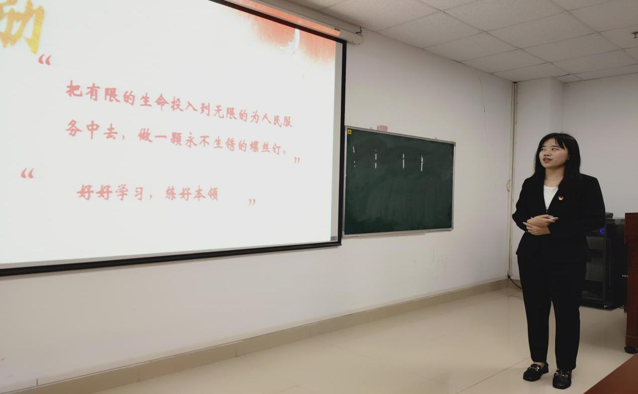 此次宣讲在“把有限的生命投入到无限的为人民服务中去,做一颗永不生锈的螺丝钉”和“好好学习,练好本领”这两句话中圆满结束,同学们虽然沉默不语,但心中早已感慨万千。