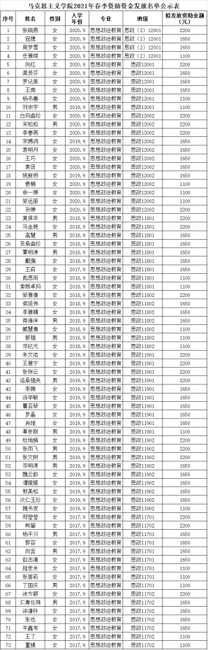 根据年度工作计划,现将公司2021年春季国家助学金发放名单予以公示。