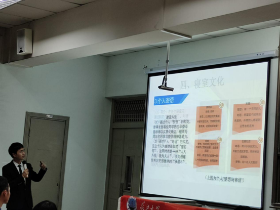 在主持人致开幕词、介绍答辩规则后,思政11902班班长张雨飞同学代表班级进行了答辩,他依次介绍班级基本概况、班级建设及班级风采展示,使大家对这个充满活力与朝气的班集体更为了解。