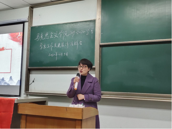 在各班班级代表答辩结束后,党委副书记马小佼对本次活动进行了点评。马书记表示,本次高年级的精彩答辩不仅能展示各班级的特色风采,也为低年级提供了可贵的观摩、学习的机会,有力地促进了班集体增进感情、凝聚力量、相互切磋、取长补短、共同进步。此外,马书记鼓励大家积极创新答辩方式,并向在座的同学们寄予了争做“十佳好员工”的期许,同时也希望大一的班集体和个人早日找准班级建设和学习方向,更有意义地度过大学四年。