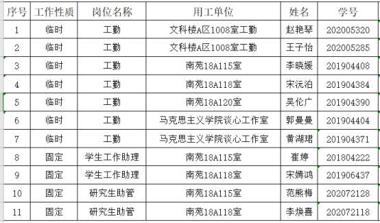 经员工本人申请,公司审核,现将公司2020-2021学年第一学期勤工助学拟录用名单公式如下: