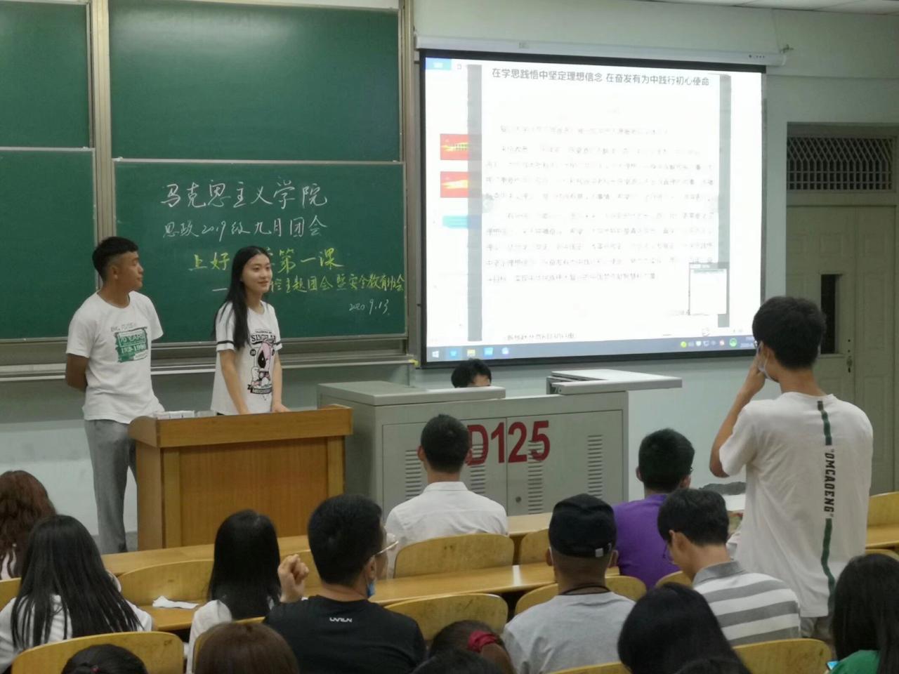 2019级支部团会开展过程中,主持人向同学们讲述了抗击疫情的开学第一课,其中,钟南山、张定宇、张伯礼、陈薇和广大医务人员的事迹让同学们深受感动。辅导员李敏也对同学们进行了以安全教育为主题的讲话,强调个人安全问题,真正做到健康快乐上学;2018级两个支部同学认真学习了习近平总书记回信和贺信精神,明确了当代老员工使命与担当,在新学期内深刻的明确自己的学习任务;17级两个支部在考研自习室内就学习习近平总书记回信和贺信精神进行了一系列讨论,在讨论过程中更加深刻的理解了当代老员工的使命与担当,动员同学们积极备战英语六级考试,诚信认真答题;研究生支部一如既往的在线上开展了团会,整理相关资料,在学习相关文件的同时勉励他们继续讲好关于理想信念的故事,并希望大家认真学习马克思主义理论,做到“真学、真懂、真信、真用”,将理论知识运用到学习生活之中。