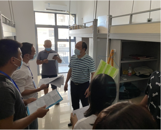 吴智勇书记、马小佼副书记则带队检查了位于南苑18栋、19栋的本科生宿舍,与每位员工逐一交谈,了解他们的体温计准备及体温自测上报情况、网课学习情况以及当前所面临的困难等,提醒同学们遵守校园防控管理要求,自觉维护个人安全。